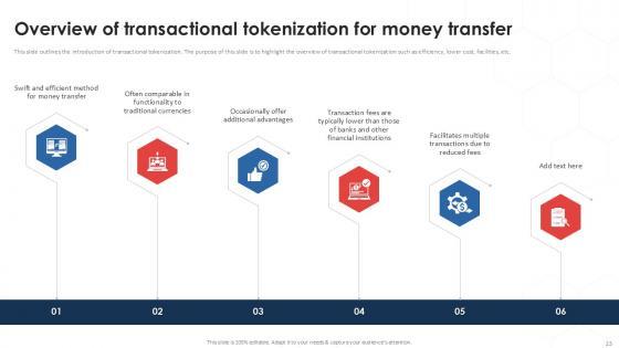 This slide outlines the introduction of transactional tokenization. The purpose of this slide is to highlight the overview of transactional tokenization such as efficiency, lower cost, facilities, etc. Take your projects to the next level with our ultimate collection of Overview Of Transactional Tokenization For Money Transfer Securing Your Data Ppt Sample Slidegeeks has designed a range of layouts that are perfect for representing task or activity duration, keeping track of all your deadlines at a glance. Tailor these designs to your exact needs and give them a truly corporate look with your own brand colors they will make your projects stand out from the rest This slide outlines the introduction of transactional tokenization. The purpose of this slide is to highlight the overview of transactional tokenization such as efficiency, lower cost, facilities, etc.