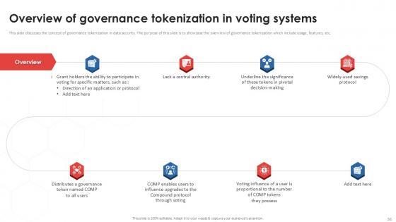 This slide discusses the concept of governance tokenization in data security. The purpose of this slide is to showcase the overview of governance tokenization which include usage, features, etc. Presenting this PowerPoint presentation, titled Overview Of Governance Tokenization In Voting Systems Securing Your Data Ppt Powerpoint with topics curated by our researchers after extensive research. This editable presentation is available for immediate download and provides attractive features when used. Download now and captivate your audience. Presenting this Overview Of Governance Tokenization In Voting Systems Securing Your Data Ppt Powerpoint Our researchers have carefully researched and created these slides with all aspects taken into consideration. This is a completely customizable Overview Of Governance Tokenization In Voting Systems Securing Your Data Ppt Powerpoint that is available for immediate downloading. Download now and make an impact on your audience. Highlight the attractive features available with our PPTs. This slide discusses the concept of governance tokenization in data security. The purpose of this slide is to showcase the overview of governance tokenization which include usage, features, etc.