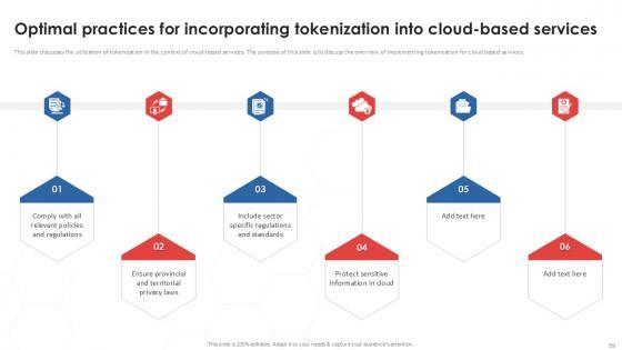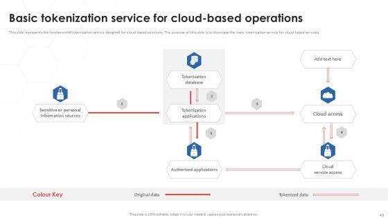 This slide discusses the utilization of tokenization in the context of cloud-based services. The purpose of this slide is to discuss the overview of implementing tokenization for cloud based services. Are you searching for a Optimal Practices For Incorporating Tokenization Into Cloud Securing Your Data Ppt Sample that is uncluttered, straightforward, and original Its easy to edit, and you can change the colors to suit your personal or business branding. For a presentation that expresses how much effort you have put in, this template is ideal With all of its features, including tables, diagrams, statistics, and lists, its perfect for a business plan presentation. Make your ideas more appealing with these professional slides. Download Optimal Practices For Incorporating Tokenization Into Cloud Securing Your Data Ppt Sample from Slidegeeks today. This slide discusses the utilization of tokenization in the context of cloud-based services. The purpose of this slide is to discuss the overview of implementing tokenization for cloud based services.