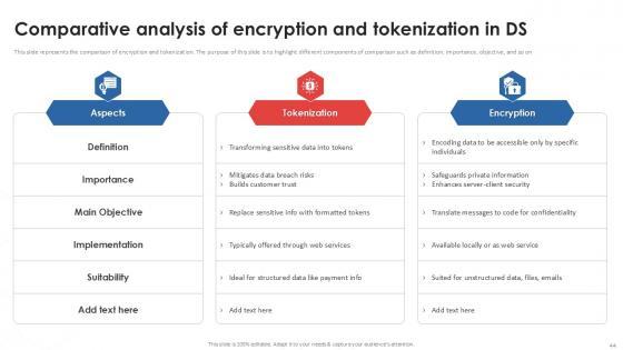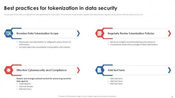 This Tokenization Strategies For Data Security Powerpoint Presentation Slides is a primer on how to capitalize on business opportunities through planning, innovation, and market intelligence. The content-ready format of the complete deck will make your job as a decision-maker a lot easier. Use this ready-made PowerPoint Template to help you outline an extensive and legible plan to capture markets and grow your company on the right path, at an exponential pace. What is even more amazing is that this presentation is completely editable and 100 percent customizable. This eighty three slide complete deck helps you impress a roomful of people with your expertise in business and even presentation. Craft such a professional and appealing presentation for that amazing recall value. Download now. Our Tokenization Strategies For Data Security Powerpoint Presentation Slides are topically designed to provide an attractive backdrop to any subject. Use them to look like a presentation pro.