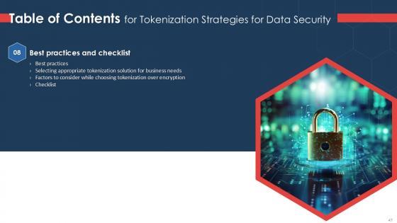 Find a pre-designed and impeccable Tokenization Strategies For Data Security For Table Of Content PPT Template. The templates can ace your presentation without additional effort. You can download these easy-to-edit presentation templates to make your presentation stand out from others. So, what are you waiting for Download the template from Slidegeeks today and give a unique touch to your presentation. Our Tokenization Strategies For Data Security For Table Of Content PPT Template are topically designed to provide an attractive backdrop to any subject. Use them to look like a presentation pro.