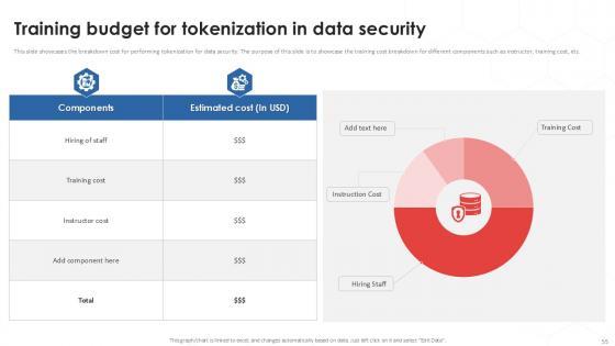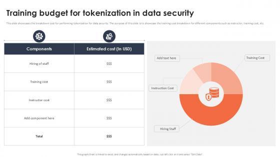 This slide showcases the breakdown cost for performing tokenization for data security. The purpose of this slide is to showcase the training cost breakdown for different components such as instructor, training cost, etc. If your project calls for a presentation, then Slidegeeks is your go-to partner because we have professionally designed, easy-to-edit templates that are perfect for any presentation. After downloading, you can easily edit Training Budget For Tokenization In Data Security Securing Your Data Ppt Slide and make the changes accordingly. You can rearrange slides or fill them with different images. Check out all the handy templates This slide showcases the breakdown cost for performing tokenization for data security. The purpose of this slide is to showcase the training cost breakdown for different components such as instructor, training cost, etc.