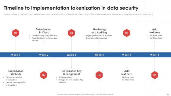 This slide outlines the timeline for executing tokenization. The purpose of this slide is to showcase the different steps performed while implementing tokenization, including key management, monitoring, etc. Get a simple yet stunning designed Timeline To Implementation Tokenization In Data Security Securing Your Data Ppt Sample It is the best one to establish the tone in your meetings. It is an excellent way to make your presentations highly effective. So, download this PPT today from Slidegeeks and see the positive impacts. Our easy-to-edit Timeline To Implementation Tokenization In Data Security Securing Your Data Ppt Sample can be your go-to option for all upcoming conferences and meetings. So, what are you waiting for Grab this template today. This slide outlines the timeline for executing tokenization. The purpose of this slide is to showcase the different steps performed while implementing tokenization, including key management, monitoring, etc.