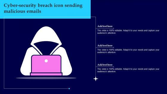 Showcasing this set of slides titled Cyber Security Breach Icon Sending Malicious Emails Guidelines Pdf The topics addressed in these templates are Cyber Security Breach, Icon Sending Malicious Emails All the content presented in this PPT design is completely editable. Download it and make adjustments in color, background, font etc. as per your unique business setting. Our Cyber Security Breach Icon Sending Malicious Emails Guidelines Pdf are topically designed to provide an attractive backdrop to any subject. Use them to look like a presentation pro.