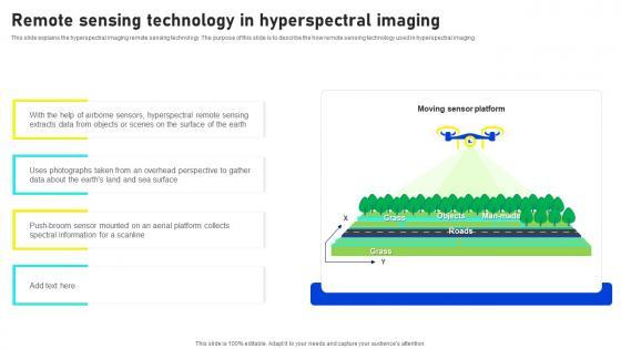This slide explains the hyperspectral imaging remote sensing technology. The purpose of this slide is to describe the how remote sensing technology used in hyperspectral imaging. Are you searching for a Remote Sensing Technology In Hyperspectral Imaging Sensors And Systems Information Pdf that is uncluttered, straightforward, and original Its easy to edit, and you can change the colors to suit your personal or business branding. For a presentation that expresses how much effort you have put in, this template is ideal With all of its features, including tables, diagrams, statistics, and lists, its perfect for a business plan presentation. Make your ideas more appealing with these professional slides. Download Remote Sensing Technology In Hyperspectral Imaging Sensors And Systems Information Pdf from Slidegeeks today. This slide explains the hyperspectral imaging remote sensing technology. The purpose of this slide is to describe the how remote sensing technology used in hyperspectral imaging.