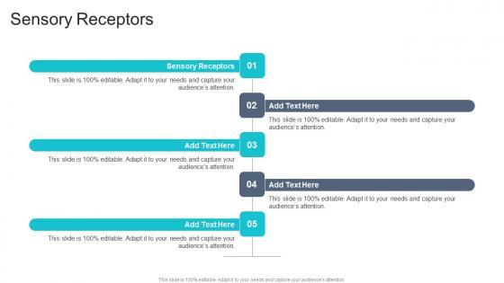 Presenting our innovatively designed set of slides titled Sensory Receptors In Powerpoint And Google Slides Cpb This completely editable PowerPoint graphic exhibits Sensory Receptors that will help you convey the message impactfully. It can be accessed with Google Slides and is available in both standard screen and widescreen aspect ratios. Apart from this, you can download this well structured PowerPoint template design in different formats like PDF, JPG, and PNG. So, click the download button now to gain full access to this PPT design. Our Sensory Receptors In Powerpoint And Google Slides Cpb are topically designed to provide an attractive backdrop to any subject. Use them to look like a presentation pro.