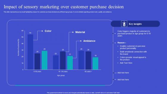 This slide represents survey result highlighting reason for customer purchase decisions by different age groups. It covers details regarding product color, quality and ambiance. Cming up with a presentation necessitates that the majority of the effort goes into the content and the message you intend to convey. The visuals of a PowerPoint presentation can only be effective if it supplements and supports the story that is being told. Keeping this in mind our experts created Impact Of Sensory Marketing Over Customer Purchase Driven Digital Marketing Download Pdf to reduce the time that goes into designing the presentation. This way, you can concentrate on the message while our designers take care of providing you with the right template for the situation. This slide represents survey result highlighting reason for customer purchase decisions by different age groups. It covers details regarding product color, quality and ambiance.