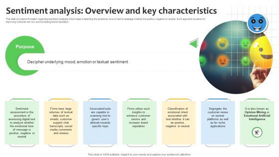 Whether you have daily or monthly meetings, a brilliant presentation is necessary. Sentiment Analysis Overview And Key Sentiment Analysis Demystified Understanding AI SS V can be your best option for delivering a presentation. Represent everything in detail using Sentiment Analysis Overview And Key Sentiment Analysis Demystified Understanding AI SS V and make yourself stand out in meetings. The template is versatile and follows a structure that will cater to your requirements. All the templates prepared by Slidegeeks are easy to download and edit. Our research experts have taken care of the corporate themes as well. So, give it a try and see the results. This slide provides information regarding sentiment analysis which helps in detecting the emotional tone of users message whether it is positive, negative or neutral. Such approach is useful for improving customer service, and increasing brand reputation.