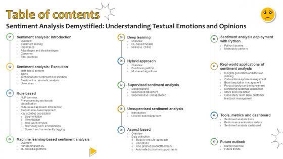 Table Of Contents Sentiment Analysis Demystified Understanding Textual Emotions And Opinions AI SS V