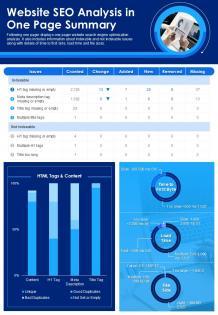 Are you searching for a Website Seo Analysis In One Page Summary Ppt Pdf Document that is uncluttered, straightforward, and original Its easy to edit, and you can change the colors to suit your personal or business branding. For a presentation that expresses how much effort you have put in, this template is ideal With all of its features, including tables, diagrams, statistics, and lists, its perfect for a business plan presentation. Make your ideas more appealing with these professional slides. Download Website Seo Analysis In One Page Summary Ppt Pdf Document from Slidegeeks today. This document titled Website SEO Analysis In One Page Summary PPT PDF Document is an A4 size template designed in Powerpoint and is 100 percent editable. It displays the details in a crisp clear and digestible format while also being visually appealing. With this document you will be able to provide a comprehensive view to your audience with minimal effort. Website SEO Analysis In One Page Summary PPT PDF Document will save you precious time and help you communicate your message with your viewers.