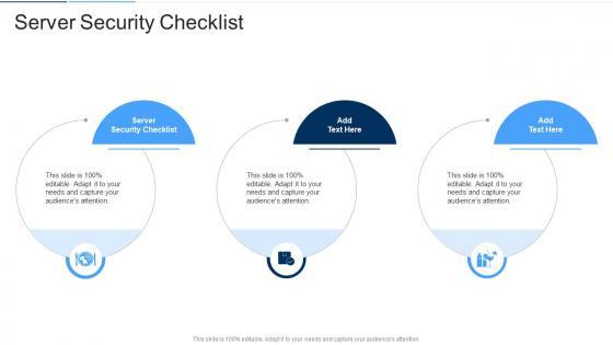 Introducing our well designed Server Security Checklist In Powerpoint And Google Slides Cpb. This PowerPoint design presents information on topics like Server Security Checklist. As it is predesigned it helps boost your confidence level. It also makes you a better presenter because of its high quality content and graphics. This PPT layout can be downloaded and used in different formats like PDF, PNG, and JPG. Not only this, it is available in both Standard Screen and Widescreen aspect ratios for your convenience. Therefore, click on the download button now to persuade and impress your audience. Our Server Security Checklist In Powerpoint And Google Slides Cpb are topically designed to provide an attractive backdrop to any subject. Use them to look like a presentation pro.