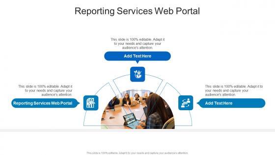 Introducing our well designed Reporting Services Web Portal In Powerpoint And Google Slides Cpb. This PowerPoint design presents information on topics like Reporting Services Web Portal. As it is predesigned it helps boost your confidence level. It also makes you a better presenter because of its high quality content and graphics. This PPT layout can be downloaded and used in different formats like PDF, PNG, and JPG. Not only this, it is available in both Standard Screen and Widescreen aspect ratios for your convenience. Therefore, click on the download button now to persuade and impress your audience. Our Reporting Services Web Portal In Powerpoint And Google Slides Cpb are topically designed to provide an attractive backdrop to any subject. Use them to look like a presentation pro.