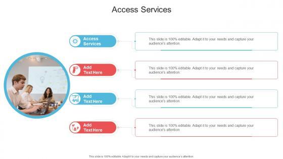 Introducing our well-designed Access Services In Powerpoint And Google Slides Cpb. This PowerPoint design presents information on topics like Access Services. As it is predesigned it helps boost your confidence level. It also makes you a better presenter because of its high-quality content and graphics. This PPT layout can be downloaded and used in different formats like PDF, PNG, and JPG. Not only this, it is available in both Standard Screen and Widescreen aspect ratios for your convenience. Therefore, click on the download button now to persuade and impress your audience. Our Access Services In Powerpoint And Google Slides Cpb are topically designed to provide an attractive backdrop to any subject. Use them to look like a presentation pro.