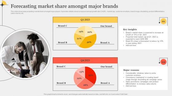 This slide showcases projecting market share amongst major players. It provides details about compound annual growth rate CAGR, market cap, customer emotions, brand image, storytelling, product differentiation, sales volume, etc.Here you can discover an assortment of the finest PowerPoint and Google Slides templates. With these templates, you can create presentations for a variety of purposes while simultaneously providing your audience with an eye-catching visual experience. Download Forecasting Market Share Amongst Major Brands Improving Customer Interaction Through Graphics Pdf to deliver an impeccable presentation. These templates will make your job of preparing presentations much quicker, yet still, maintain a high level of quality. Slidegeeks has experienced researchers who prepare these templates and write high-quality content for you. Later on, you can personalize the content by editing the Forecasting Market Share Amongst Major Brands Improving Customer Interaction Through Graphics Pdf. This slide showcases projecting market share amongst major players. It provides details about compound annual growth rate CAGR, market cap, customer emotions, brand image, storytelling, product differentiation, sales volume, etc.
