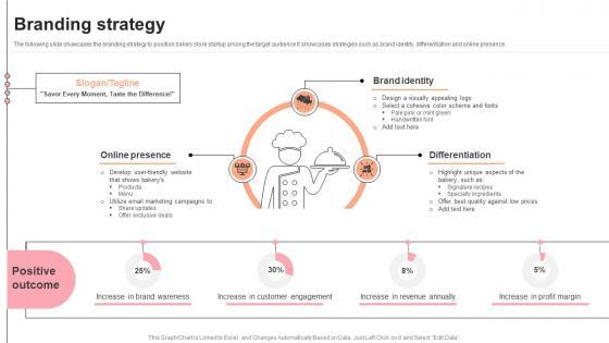 The following slide showcases the branding strategy to position bakery store startup among the target audience It showcases strategies such as brand identity, differentiation and online presence. Boost your pitch with our creative Branding Strategy Pastry Shop Market Entry Plan GTM SS V. Deliver an awe-inspiring pitch that will mesmerize everyone. Using these presentation templates you will surely catch everyones attention. You can browse the ppts collection on our website. We have researchers who are experts at creating the right content for the templates. So you do not have to invest time in any additional work. Just grab the template now and use them. The following slide showcases the branding strategy to position bakery store startup among the target audience It showcases strategies such as brand identity, differentiation and online presence.