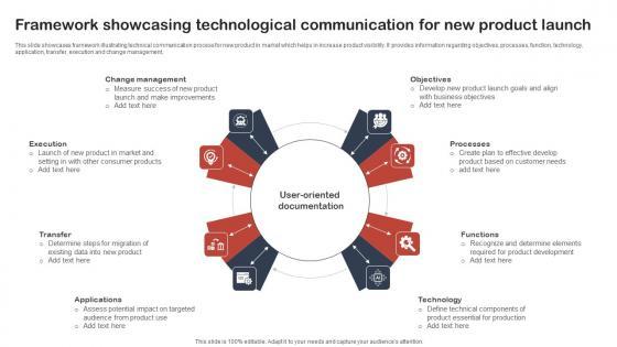 This slide showcases framework illustrating technical communication process for new product in market which helps in increase product visibility. It provides information regarding objectives, processes, function, technology, application, transfer, execution and change management, Showcasing this set of slides titled Framework Showcasing Technological Communication For New Product Launch Themes Pdf. The topics addressed in these templates are Change management, Execution, Transfer. All the content presented in this PPT design is completely editable. Download it and make adjustments in color, background, font etc. as per your unique business setting. This slide showcases framework illustrating technical communication process for new product in market which helps in increase product visibility. It provides information regarding objectives, processes, function, technology, application, transfer, execution and change management