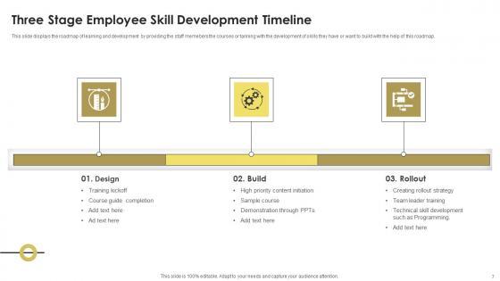 Share a great deal of information on the topic by deploying this Employee Skill Development Timeline Ppt Powerpoint Presentation Complete Deck With Slides. Support your ideas and thought process with this prefabricated set. It includes a set of eleven slides, all fully modifiable and editable. Each slide can be restructured and induced with the information and content of your choice. You can add or remove large content boxes as well, to make this PPT slideshow more personalized. Its high-quality graphics and visuals help in presenting a well-coordinated pitch. This PPT template is also a resourceful tool to take visual cues from and implement the best ideas to help your business grow and expand. The main attraction of this well-formulated deck is that everything is editable, giving you the freedom to adjust it to your liking and choice. Changes can be made in the background and theme as well to deliver an outstanding pitch. Therefore, click on the download button now to gain full access to this multifunctional set. Our Employee Skill Development Timeline Ppt Powerpoint Presentation Complete Deck With Slides are topically designed to provide an attractive backdrop to any subject. Use them to look like a presentation pro.