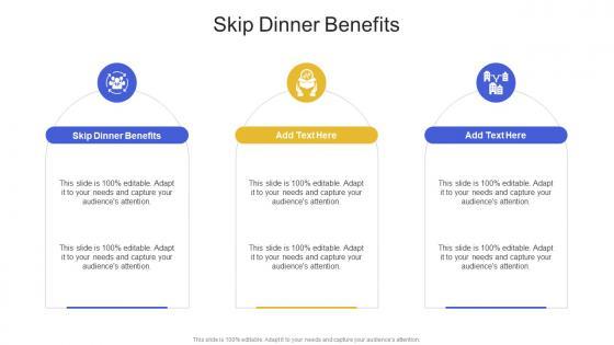 Presenting our innovatively-designed set of slides titled Skip Dinner Benefits In Powerpoint And Google Slides Cpb. This completely editable PowerPoint graphic exhibits Skip Dinner Benefits that will help you convey the message impactfully. It can be accessed with Google Slides and is available in both standard screen and widescreen aspect ratios. Apart from this, you can download this well-structured PowerPoint template design in different formats like PDF, JPG, and PNG. So, click the download button now to gain full access to this PPT design. Our Skip Dinner Benefits In Powerpoint And Google Slides Cpb are topically designed to provide an attractive backdrop to any subject. Use them to look like a presentation pro.