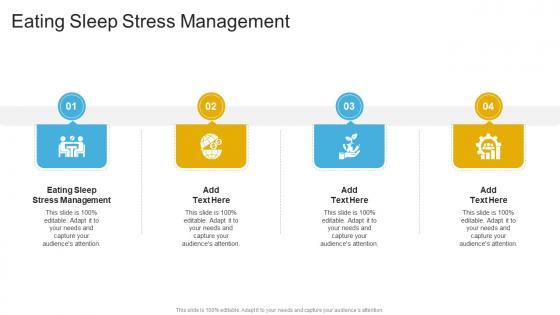 Introducing our well designed Eating Sleep Stress Management In Powerpoint And Google Slides Cpb. This PowerPoint design presents information on topics like Eating Sleep Stress Management. As it is predesigned it helps boost your confidence level. It also makes you a better presenter because of its high quality content and graphics. This PPT layout can be downloaded and used in different formats like PDF, PNG, and JPG. Not only this, it is available in both Standard Screen and Widescreen aspect ratios for your convenience. Therefore, click on the download button now to persuade and impress your audience. Our Eating Sleep Stress Management In Powerpoint And Google Slides Cpb are topically designed to provide an attractive backdrop to any subject. Use them to look like a presentation pro.