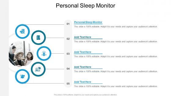 Presenting our innovatively designed set of slides titled Personal Sleep Monitor In Powerpoint And Google Slides Cpb. This completely editable PowerPoint graphic exhibits Personal Sleep Monitor that will help you convey the message impactfully. It can be accessed with Google Slides and is available in both standard screen and widescreen aspect ratios. Apart from this, you can download this well structured PowerPoint template design in different formats like PDF, JPG, and PNG. So, click the download button now to gain full access to this PPT design. Our Personal Sleep Monitor In Powerpoint And Google Slides Cpb are topically designed to provide an attractive backdrop to any subject. Use them to look like a presentation pro.