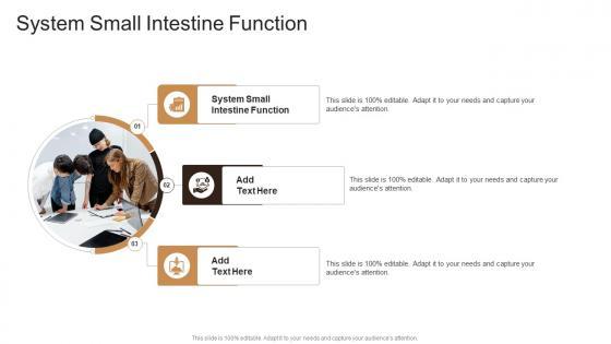 Introducing our well designed Small Intestine Function In Powerpoint And Google Slides Cpb. This PowerPoint design presents information on topics like Small Intestine Function. As it is predesigned it helps boost your confidence level. It also makes you a better presenter because of its high-quality content and graphics. This PPT layout can be downloaded and used in different formats like PDF, PNG, and JPG. Not only this, it is available in both Standard Screen and Widescreen aspect ratios for your convenience. Therefore, click on the download button now to persuade and impress your audience. Our Small Intestine Function In Powerpoint And Google Slides Cpb are topically designed to provide an attractive backdrop to any subject. Use them to look like a presentation pro.