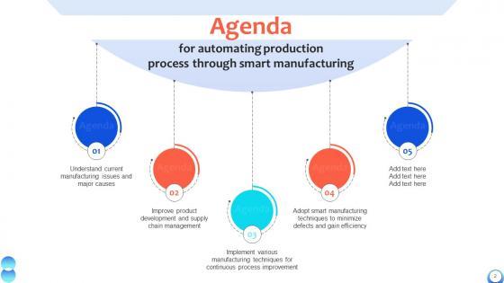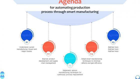 Find a pre-designed and impeccable Agenda For Automating Production Process Through Smart Manufacturing Strategy SS V. The templates can ace your presentation without additional effort. You can download these easy-to-edit presentation templates to make your presentation stand out from others. So, what are you waiting for Download the template from Slidegeeks today and give a unique touch to your presentation. Our Agenda For Automating Production Process Through Smart Manufacturing Strategy SS V are topically designed to provide an attractive backdrop to any subject. Use them to look like a presentation pro.