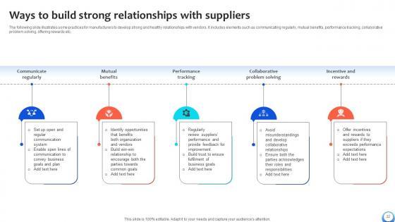 Download our innovative and attention grabbing Icons Slide For Automating Production Process Through Smart Manufacturing Strategy SS V template. The set of slides exhibit completely customizable icons. These icons can be incorporated into any business presentation. So download it immediately to clearly communicate with your clientele. Our Icons Slide For Automating Production Process Through Smart Manufacturing Strategy SS V are topically designed to provide an attractive backdrop to any subject. Use them to look like a presentation pro.