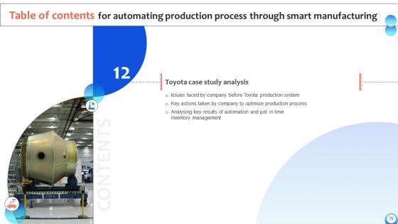This modern and well-arranged Table Of Contents Automating Production Process Through Smart Manufacturing Strategy SS V provides lots of creative possibilities. It is very simple to customize and edit with the Powerpoint Software. Just drag and drop your pictures into the shapes. All facets of this template can be edited with Powerpoint, no extra software is necessary. Add your own material, put your images in the places assigned for them, adjust the colors, and then you can show your slides to the world, with an animated slide included. Our Table Of Contents Automating Production Process Through Smart Manufacturing Strategy SS V are topically designed to provide an attractive backdrop to any subject. Use them to look like a presentation pro.