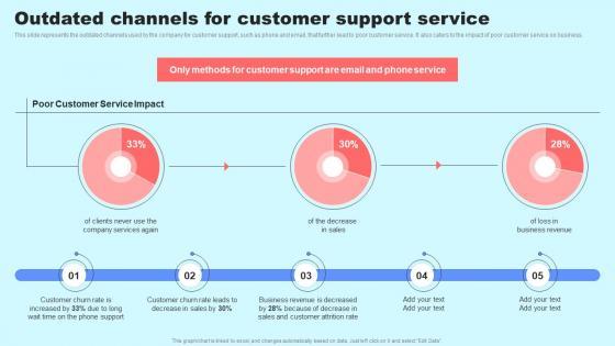 This slide represents the outdated channels used by the company for customer support, such as phone and email, that further lead to poor customer service. It also caters to the impact of poor customer service on business. The best PPT templates are a great way to save time, energy, and resources. Slidegeeks have 100 percent editable powerpoint slides making them incredibly versatile. With these quality presentation templates, you can create a captivating and memorable presentation by combining visually appealing slides and effectively communicating your message. Download Social Media In Customer Support Outdated Channels For Customer Support Service Clipart Pdf from Slidegeeks and deliver a wonderful presentation. This slide represents the outdated channels used by the company for customer support, such as phone and email, that further lead to poor customer service. It also caters to the impact of poor customer service on business.