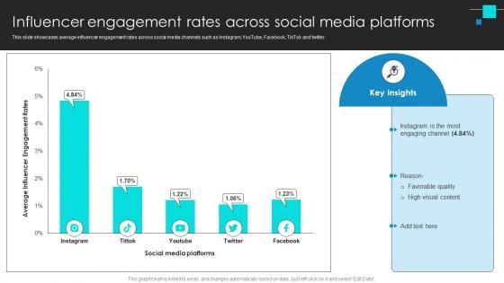 This slide showcases average influencer engagement rates across social media channels such as Instagram, YouTube, Facebook, TikTok and twitter. The best PPT templates are a great way to save time, energy, and resources. Slidegeeks have 100 percent editable powerpoint slides making them incredibly versatile. With these quality presentation templates, you can create a captivating and memorable presentation by combining visually appealing slides and effectively communicating your message. Download Project Benchmarking Process Influencer Engagement Rates Across Social Media CRP DK SS V from Slidegeeks and deliver a wonderful presentation. This slide showcases average influencer engagement rates across social media channels such as Instagram, YouTube, Facebook, TikTok and twitter.