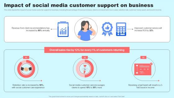 This slide depicts the impact of social media customer support on business, including the percentage of revenue increase, returns on investment, rise in sales, retention rate, customer money spent, and boost in income. Find highly impressive Impact Of Social Media Customer Support Video Conferencing In Corporate Background Pdf on Slidegeeks to deliver a meaningful presentation. You can save an ample amount of time using these presentation templates. No need to worry to prepare everything from scratch because Slidegeeks experts have already done a huge research and work for you. You need to download Impact Of Social Media Customer Support Video Conferencing In Corporate Background Pdf for your upcoming presentation. All the presentation templates are 100 percent editable and you can change the color and personalize the content accordingly. Download now. This slide depicts the impact of social media customer support on business, including the percentage of revenue increase, returns on investment, rise in sales, retention rate, customer money spent, and boost in income.