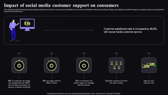 This slide represents the impact of social media customer care service on consumers, including the rise in customer satisfaction rate, the percentage of happy and satisfied, and neither happy nor unhappy customers, and standard response time by the team. Are you in need of a template that can accommodate all of your creative concepts This one is crafted professionally and can be altered to fit any style. Use it with Google Slides or PowerPoint. Include striking photographs, symbols, depictions, and other visuals. Fill, move around, or remove text boxes as desired. Test out color palettes and font mixtures. Edit and save your work, or work with colleagues. Download Social Media In Customer Impact Of Social Media Customer Support On Consumers Introduction Pdf and observe how to make your presentation outstanding. Give an impeccable presentation to your group and make your presentation unforgettable. This slide represents the impact of social media customer care service on consumers, including the rise in customer satisfaction rate, the percentage of happy and satisfied, and neither happy nor unhappy customers, and standard response time by the team.