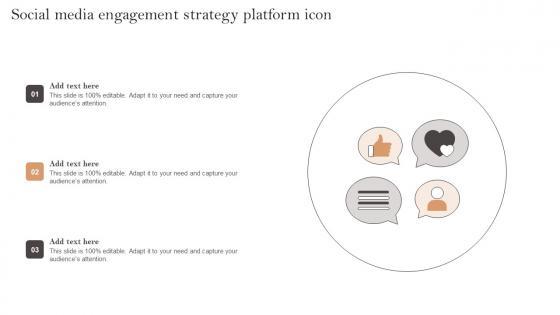 Showcasing this set of slides titled Social Media Engagement Strategy Platform Icon Ppt File Introduction Pdf. The topics addressed in these templates are Social Media Engagement, Strategy Platform, Icon. All the content presented in this PPT design is completely editable. Download it and make adjustments in color, background, font etc. as per your unique business setting. Our Social Media Engagement Strategy Platform Icon Ppt File Introduction Pdf are topically designed to provide an attractive backdrop to any subject. Use them to look like a presentation pro.