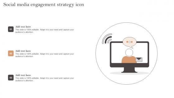Showcasing this set of slides titled Social Media Engagement Strategy Icon Ppt Styles Summary Pdf. The topics addressed in these templates are Social Media Engagement, Strategy, Icon. All the content presented in this PPT design is completely editable. Download it and make adjustments in color, background, font etc. as per your unique business setting. Our Social Media Engagement Strategy Icon Ppt Styles Summary Pdf are topically designed to provide an attractive backdrop to any subject. Use them to look like a presentation pro.