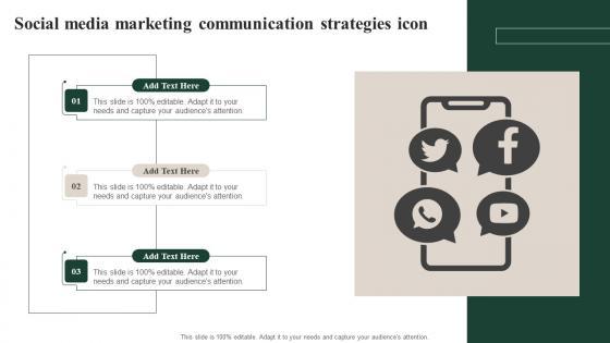 Presenting Social Media Marketing Communication Strategy Icon Elements PDF to dispense important information. This template comprises three stages. It also presents valuable insights into the topics including Social Media Marketing, Communication Strategy Icon. This is a completely customizable PowerPoint theme that can be put to use immediately. So, download it and address the topic impactfully.