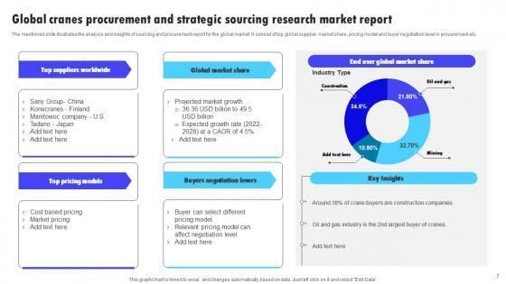The mentioned slide illustrates the analysis and insights of sourcing and procurement report for the global market. It consist of top global supplier, market share, pricing model and buyer negotiation level in procurement etc. Showcasing this set of slides titled Global Cranes Procurement And Strategic Sourcing Research Market Report Inspiration Pdf. The topics addressed in these templates are Top Global Supplier, Market Share, Pricing Model. All the content presented in this PPT design is completely editable. Download it and make adjustments in color, background, font etc. as per your unique business setting. The mentioned slide illustrates the analysis and insights of sourcing and procurement report for the global market. It consist of top global supplier, market share, pricing model and buyer negotiation level in procurement etc.