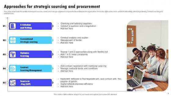 This Strategic Sourcing And Procurement Ppt Powerpoint Presentation Complete Deck With Slides acts as backup support for your ideas, vision, thoughts, etc. Use it to present a thorough understanding of the topic. This PPT slideshow can be utilized for both in-house and outside presentations depending upon your needs and business demands. Entailing twelve slides with a consistent design and theme, this template will make a solid use case. As it is intuitively designed, it suits every business vertical and industry. All you have to do is make a few tweaks in the content or any other component to design unique presentations. The biggest advantage of this complete deck is that it can be personalized multiple times once downloaded. The color, design, shapes, and other elements are free to modify to add personal touches. You can also insert your logo design in this PPT layout. Therefore a well-thought and crafted presentation can be delivered with ease and precision by downloading this Strategic Sourcing And Procurement Ppt Powerpoint Presentation Complete Deck With Slides PPT slideshow. Our Strategic Sourcing And Procurement Ppt Powerpoint Presentation Complete Deck With Slides are topically designed to provide an attractive backdrop to any subject. Use them to look like a presentation pro.