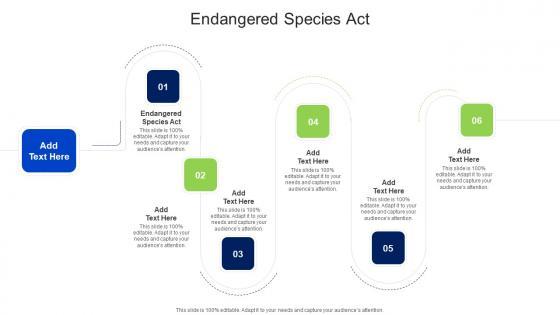 Introducing our well designed Endangered Species Act In Powerpoint And Google Slides Cpb. This PowerPoint design presents information on topics like Endangered Species Act. As it is predesigned it helps boost your confidence level. It also makes you a better presenter because of its high quality content and graphics. This PPT layout can be downloaded and used in different formats like PDF, PNG, and JPG. Not only this, it is available in both Standard Screen and Widescreen aspect ratios for your convenience. Therefore, click on the download button now to persuade and impress your audience. Our Endangered Species Act In Powerpoint And Google Slides Cpb are topically designed to provide an attractive backdrop to any subject. Use them to look like a presentation pro.