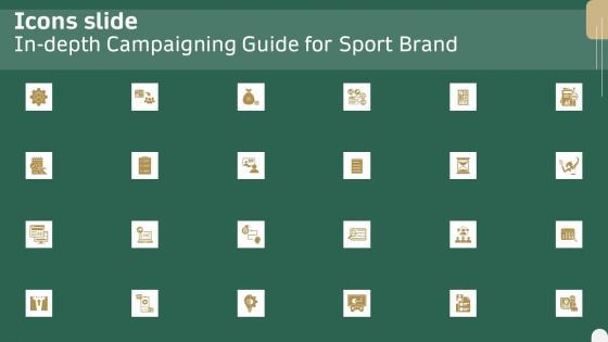 Introducing our well designed Icons Slide In Depth Campaigning Guide For Sport Brand Diagrams PDF set of slides. The slide displays editable icons to enhance your visual presentation. The icons can be edited easily. So customize according to your business to achieve a creative edge. Download and share it with your audience. This slide showcases best digital promotion practices to use for partnering with sports team. It provides details about branded merchandize, social media, seasonal advertisement strategy and TV ads.