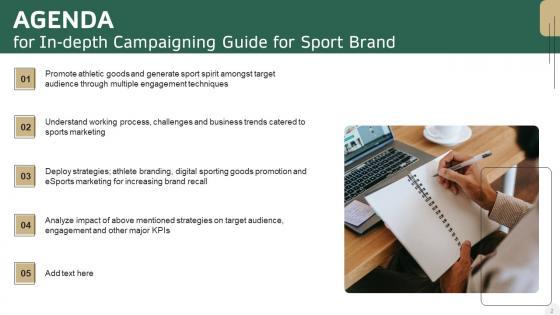 Find a pre-designed and impeccable Agenda For In Depth Campaigning Guide For Sport Brand Structure PDF The templates can ace your presentation without additional effort. You can download these easy-to-edit presentation templates to make your presentation stand out from others. So, what are you waiting for Download the template from Slidegeeks today and give a unique touch to your presentation. Our Agenda For In Depth Campaigning Guide For Sport Brand Structure PDF are topically designed to provide an attractive backdrop to any subject. Use them to look like a presentation pro.