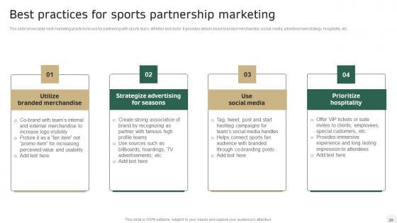 This slide showcases best digital promotion practices to use for partnering with sports team. It provides details about branded merchandize, social media, seasonal advertisement strategy and TV ads. There are so many reasons you need a Integrating Sports Marketing Campaign How Sports Brands Can Digitally Promote Their Rules PDF. The first reason is you cant spend time making everything from scratch, Thus, Slidegeeks has made presentation templates for you too. You can easily download these templates from our website easily.