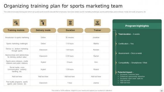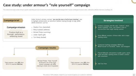 Deploy this comprehensive In Depth Campaigning Guide For Sport Brand Ppt PowerPoint Presentation Complete Deck With Slides to analyze how to innovatively carry forward your business with this Seventy One slide complete deck. There are also options galore if you want to key in your own data in this wonderful presentation, which as always is 100 percent editable and customizable. This template showcases visual elements of the business process to help you understand the many advantages of using presentation templates to spruce up your offerings and be on the top of the game. With the use of this presentation template, you prove yourself to be a champion of the new world of winning clients and the master of pitches that matter. Download now. Our In Depth Campaigning Guide For Sport Brand Ppt PowerPoint Presentation Complete Deck With Slides are topically designed to provide an attractive backdrop to any subject. Use them to look like a presentation pro.