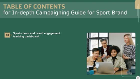 Do you have an important presentation coming up Are you looking for something that will make your presentation stand out from the rest Look no further than Sports Team And Brand Engagement Tracking Dashboard In Depth Campaigning Guide Diagrams PDF With our professional designs, you can trust that your presentation will pop and make delivering it a smooth process. And with Slidegeeks, you can trust that your presentation will be unique and memorable. So why wait Grab Sports Team And Brand Engagement Tracking Dashboard In Depth Campaigning Guide Diagrams PDF today and make your presentation stand out from the rest Our Table Of Contents For In Depth Campaigning Guide For Sport Brand Infographics PDF are topically designed to provide an attractive backdrop to any subject. Use them to look like a presentation pro.