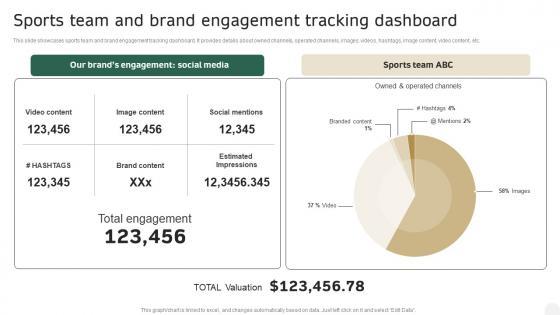 This slide showcases sports team and brand engagement tracking dashboard. It provides details about owned channels, operated channels, images, videos, hashtags, image content, video content, etc. Create an editable Integrating Sports Marketing Campaign Sports Team And Brand Engagement Tracking Download PDF that communicates your idea and engages your audience. Whether youre presenting a business or an educational presentation, pre-designed presentation templates help save time. Integrating Sports Marketing Campaign Sports Team And Brand Engagement Tracking Download PDF is highly customizable and very easy to edit, covering many different styles from creative to business presentations. Slidegeeks has creative team members who have crafted amazing templates. So, go and get them without any delay.
