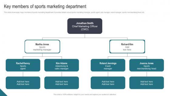 This slide showcases major members of sports marketing department. It provides details about sports marketing manager, sports agent, ads manager, event manager, sports merchandising head, etc. This Key Members Of Sports Marketing Department Athletic Activities Advertising Program Inspiration Pdf is perfect for any presentation, be it in front of clients or colleagues. It is a versatile and stylish solution for organizing your meetings. The Key Members Of Sports Marketing Department Athletic Activities Advertising Program Inspiration Pdf features a modern design for your presentation meetings. The adjustable and customizable slides provide unlimited possibilities for acing up your presentation. Slidegeeks has done all the homework before launching the product for you. So, do not wait, grab the presentation templates today This slide showcases major members of sports marketing department. It provides details about sports marketing manager, sports agent, ads manager, event manager, sports merchandising head, etc.
