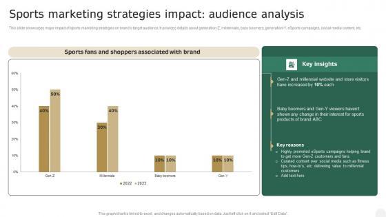 This slide showcases major impact of sports marketing strategies on brands target audience. It provides details about generation-Z, millennials, baby boomers, generation Y, eSports campaigns, social media content, etc. Are you searching for a Integrating Sports Marketing Campaign Sports Marketing Strategies Impact Audience Analysis Themes PDF that is uncluttered, straightforward, and original Its easy to edit, and you can change the colors to suit your personal or business branding. For a presentation that expresses how much effort youve put in, this template is ideal With all of its features, including tables, diagrams, statistics, and lists, its perfect for a business plan presentation. Make your ideas more appealing with these professional slides. Download Integrating Sports Marketing Campaign Sports Marketing Strategies Impact Audience Analysis Themes PDF from Slidegeeks today.