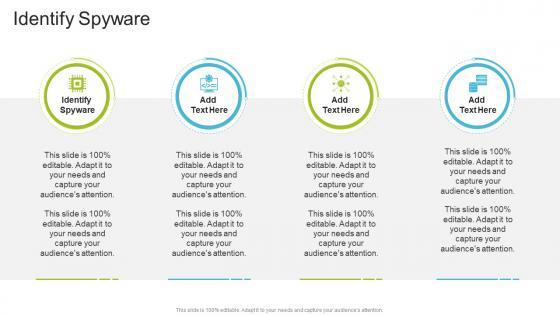 Introducing our well-designed Identify Spyware In Powerpoint And Google Slides Cpb. This PowerPoint design presents information on topics like Identify Spyware. As it is predesigned it helps boost your confidence level. It also makes you a better presenter because of its high-quality content and graphics. This PPT layout can be downloaded and used in different formats like PDF, PNG, and JPG. Not only this, it is available in both Standard Screen and Widescreen aspect ratios for your convenience. Therefore, click on the download button now to persuade and impress your audience. Our Identify Spyware In Powerpoint And Google Slides Cpb are topically designed to provide an attractive backdrop to any subject. Use them to look like a presentation pro.