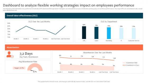 The following slide delineates a key performance indicator KPI dashboard through which managers can evaluate the success of a flexible working policy on workforce performance. The major KPIs are absenteeism rate, overall labor effectiveness etc. Slidegeeks has constructed Dashboard To Analyze Flexible Working Strategies Impact Optimizing Staff Retention Rate Background Pdf after conducting extensive research and examination. These presentation templates are constantly being generated and modified based on user preferences and critiques from editors. Here, you will find the most attractive templates for a range of purposes while taking into account ratings and remarks from users regarding the content. This is an excellent jumping-off point to explore our content and will give new users an insight into our top-notch PowerPoint Templates. The following slide delineates a key performance indicator KPI dashboard through which managers can evaluate the success of a flexible working policy on workforce performance. The major KPIs are absenteeism rate, overall labor effectiveness etc.
