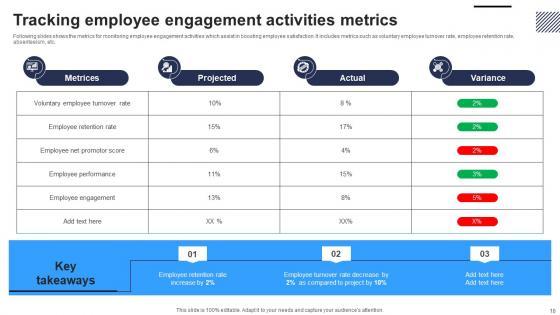 The following slide depicts key performance indicators to review employee engagement progress after executing strategies. It includes elements such as voluntary turnover rate, absenteeism, retention rate, customer satisfaction rate, net promotor score etc. Do you have an important presentation coming up Are you looking for something that will make your presentation stand out from the rest Look no further than Analyzing And Improving Staff Work Satisfaction Track Employee Engagement Metrics Score Portrait PDF. With our professional designs, you can trust that your presentation will pop and make delivering it a smooth process. And with Slidegeeks, you can trust that your presentation will be unique and memorable. So why wait Grab Analyzing And Improving Staff Work Satisfaction Track Employee Engagement Metrics Score Portrait PDF today and make your presentation stand out from the rest.