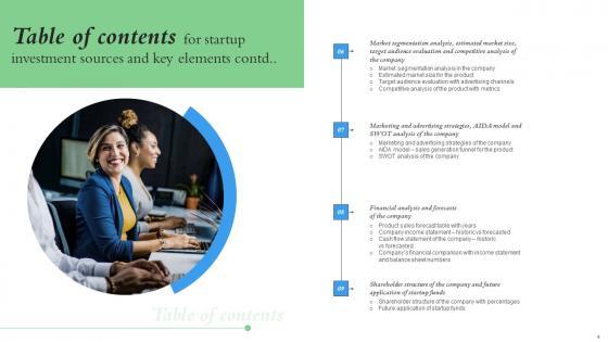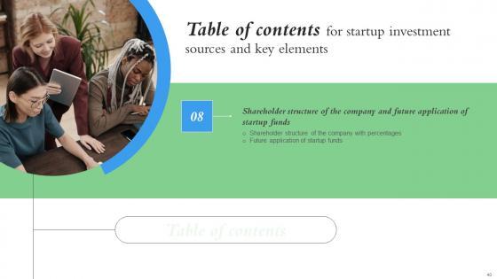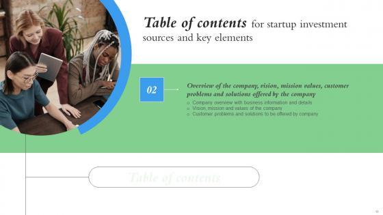 The best PPT templates are a great way to save time, energy, and resources. Slidegeeks have 100 percent editable powerpoint slides making them incredibly versatile. With these quality presentation templates, you can create a captivating and memorable presentation by combining visually appealing slides and effectively communicating your message. Download Startup Investment Sources And Key Elements Table Of Contents Microsoft Pdf from Slidegeeks and deliver a wonderful presentation. Our Startup Investment Sources And Key Elements Table Of Contents Microsoft Pdf are topically designed to provide an attractive backdrop to any subject. Use them to look like a presentation pro.